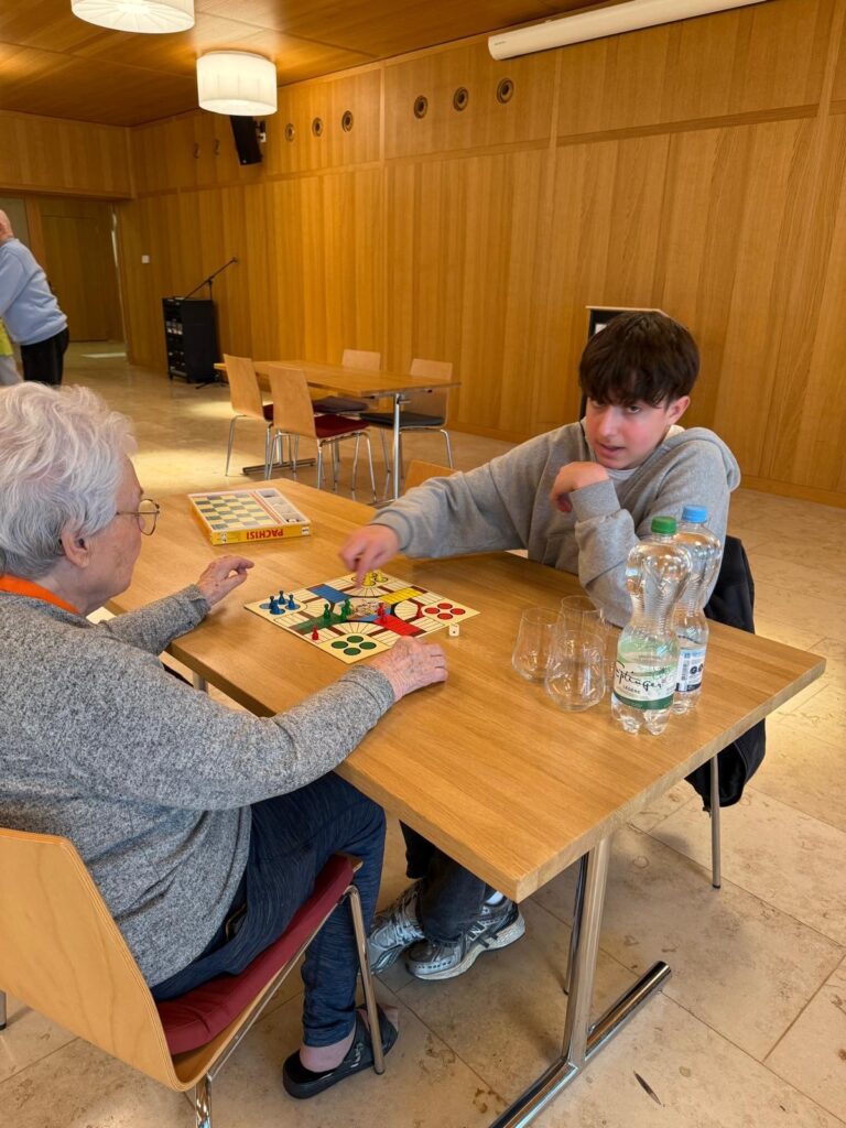 Es war bereits das zweite Mal, dass die Jugendlichen unserer Pfarrei in das Alterszentrum gingen, um mit den Bewohnerinnen und Bewohnern einen Spielenachmittag durchzuführen. Die SchülerInnen wurden von der Mitarbeiterin der Aktivierung am Nachmittag des 4. Februar empfangen und eingeführt. An 5 Tischgruppen waren unterschiedliche Spiele vorbereitet, die die Jugendlichen mit den Seniorinnen und Senioren spielen konnten. Ratespiele, Eile mit Weile, Rummicup und andere Spiele machten den Nachmittag kurzweilig. Die Bewohnerinnen und Bewohner im Alterszentrum hatten viel Spass, ebenso die Jugendlichen. So zogen alle das Fazit, das könne man gerne wieder Mal machen.